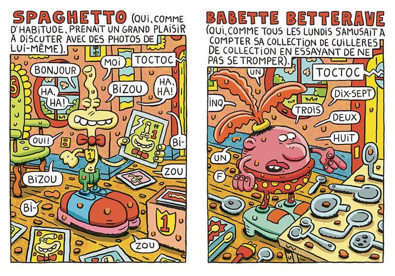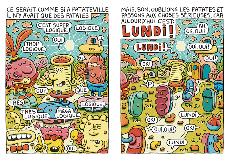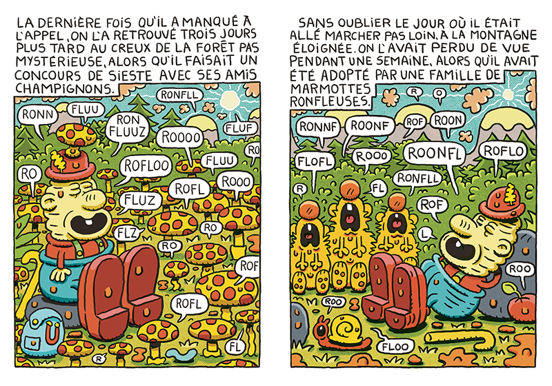 Aujourd’hui, il met ce regard déjanté au service du jeune public en illustrant la série Méchant Far West chez Monsieur Ed et avec ce premier tome des Histoires de Nouilleville.